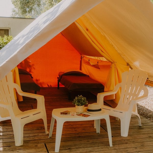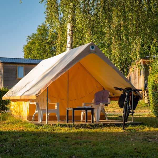 Geniet van een nog comfortabeler verblijf! In een omgebouwde tent hoef je je alleen maar te installeren… De camping heeft 2 omgebouwde tenten die geschikt zijn voor een tussenstop!